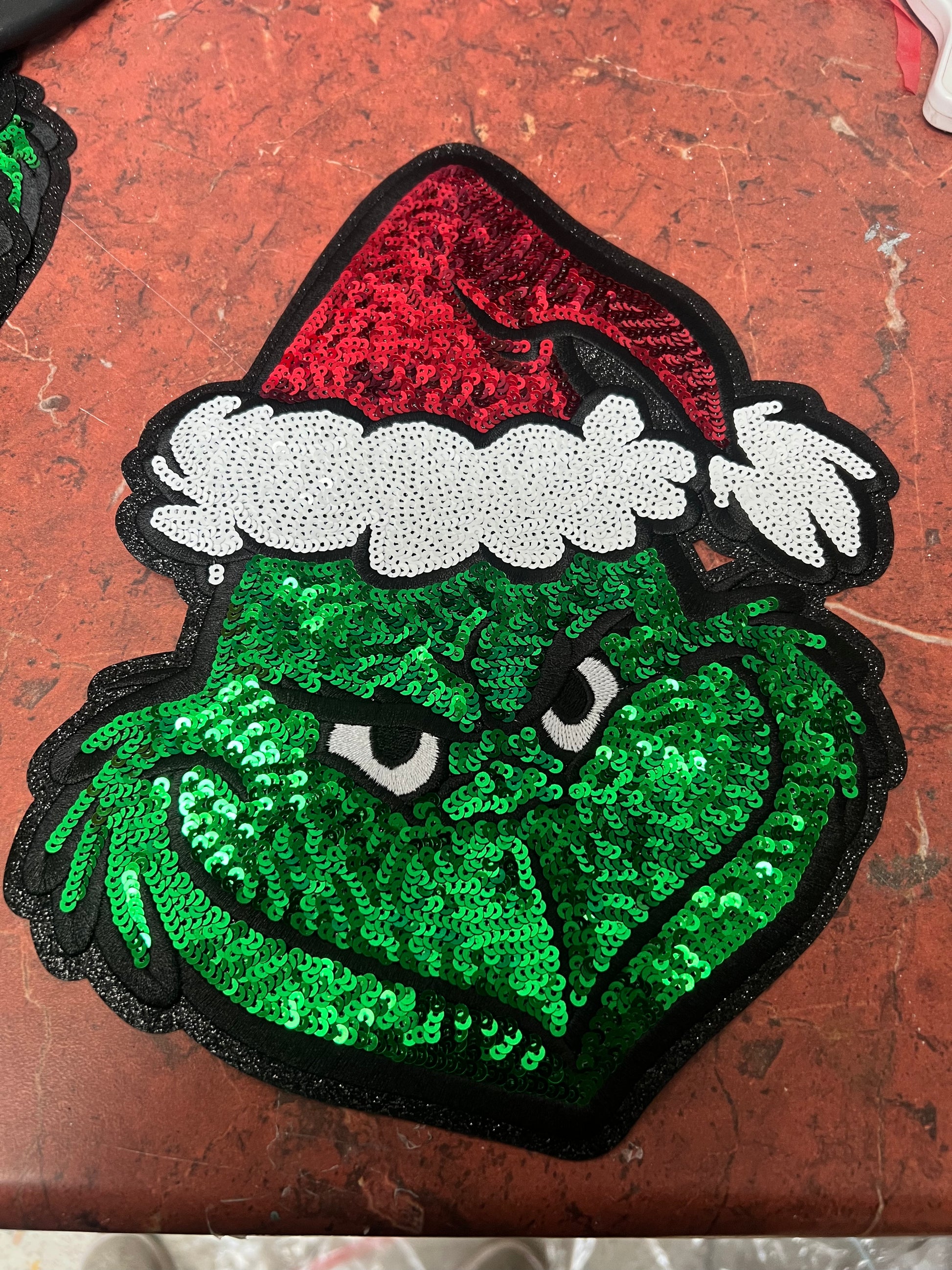 Large sequin grinch clothing transfer